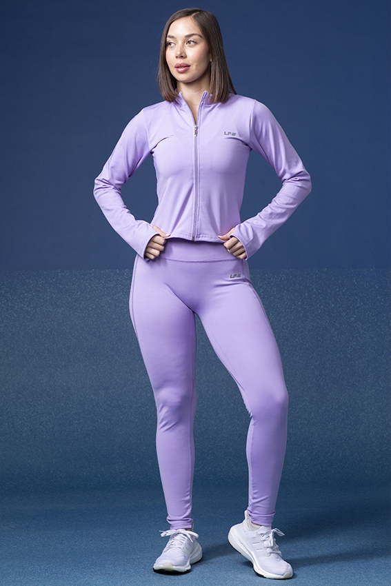 Entallada a la cadera con cuello alto y sin bolsillos. Incluye abertura en puños para el dedo y recorte en la espalda que acompaña la silueta.